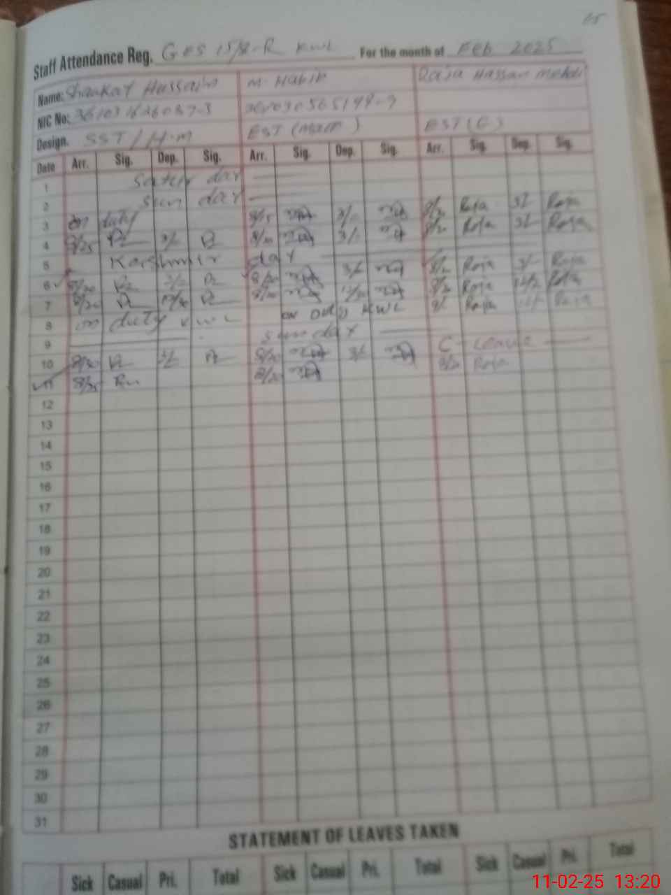 | 36**** | As**** Ka**** | PST | Regular | 0 | 0 | 31 | 0 | 0 | 0 | 0 | 0 | 0 | Absent (Un-Authorized) |