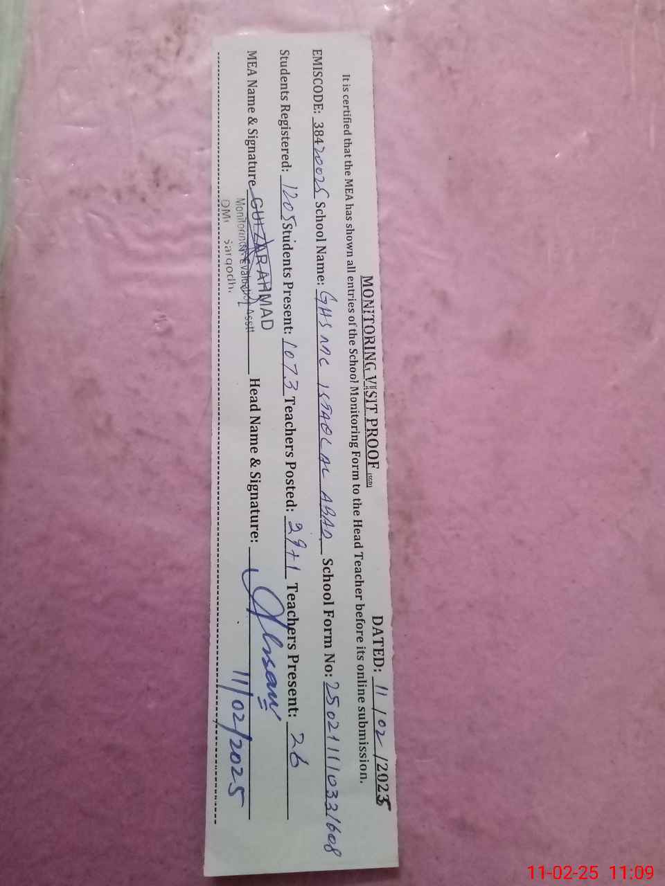 | EMIS Code: 38420025 | Name of School: GHS MC ISTAQLAL ABAD SARGODHA | |||