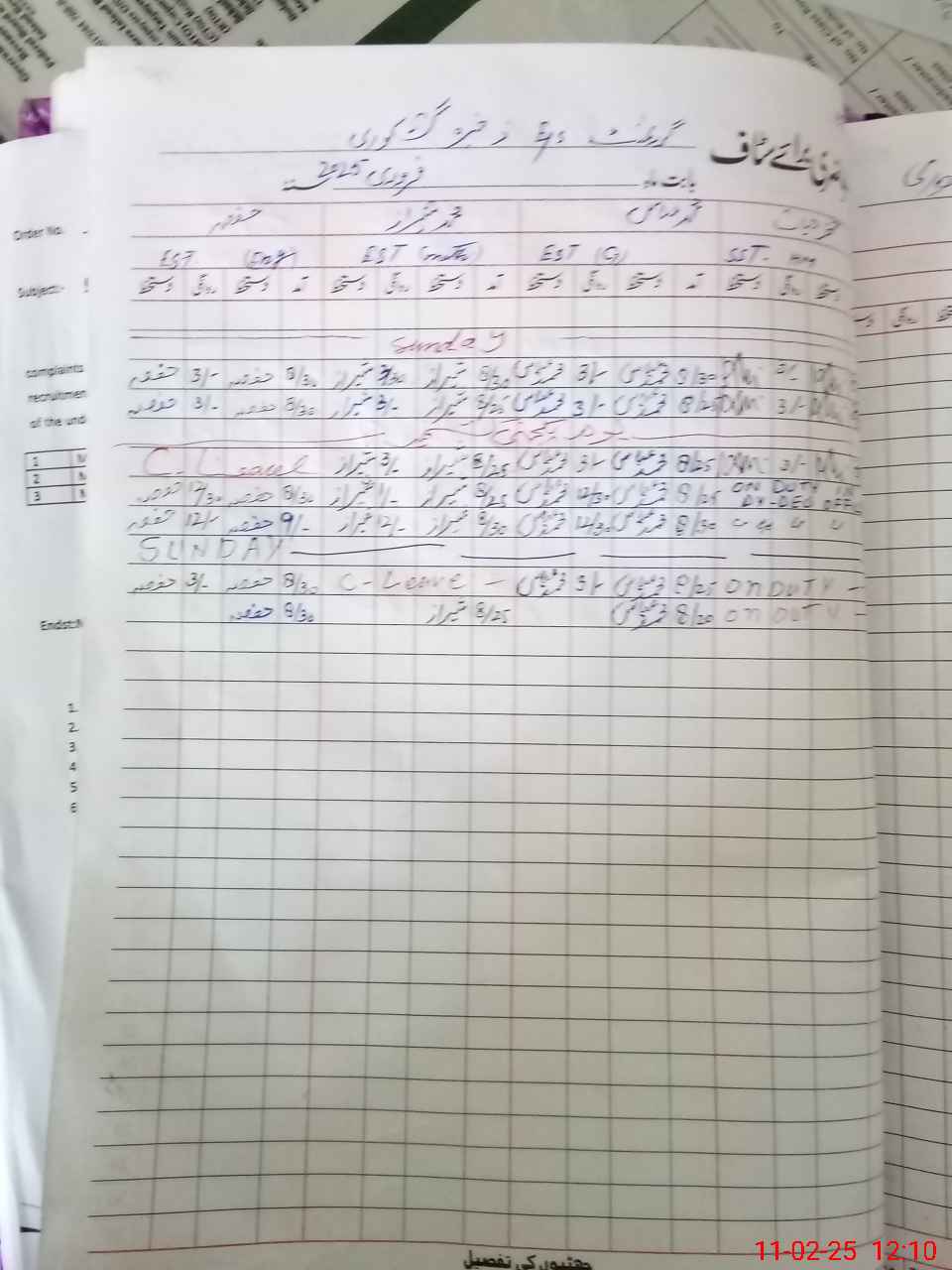 | CNIC | Full Name | Designation | R/C | Absence During Last Calender Month |