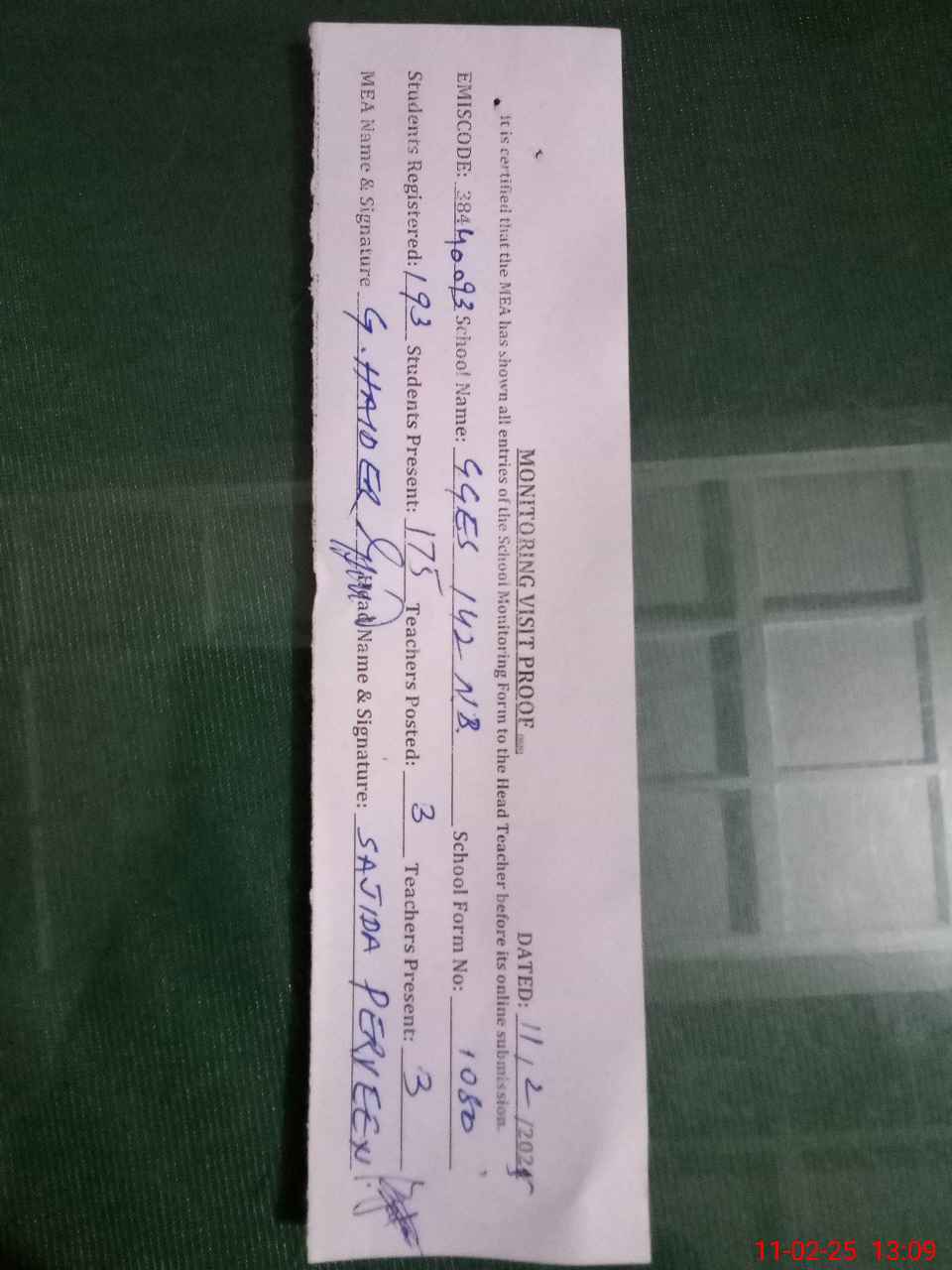 | Certified that this School was Inspected by the Undersigned MEA/DMO Today and the Information Stated Above is as Per Record. | |||||