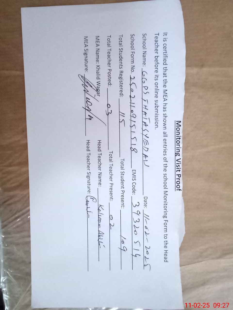 | EMIS Code: 39320514 | Name of School: GGPS THATA SYEDAN | |||