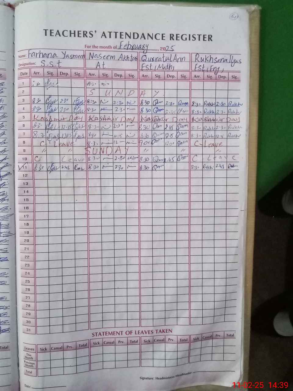 | Name: FA**** YA**** Designation: (School Headmaster's/Headmistress's) SST GENERAL Phone/Cell Number: 03**** |