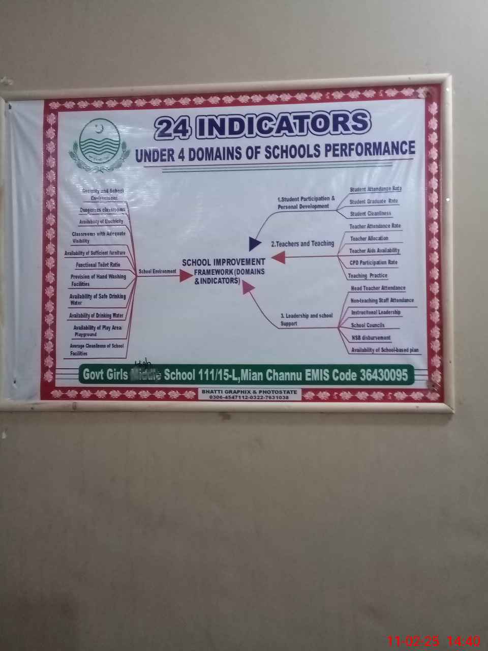 | EMIS Code: 36430095 | Name of School: GGHS 111/15-L, MIAN CHANNU | |||