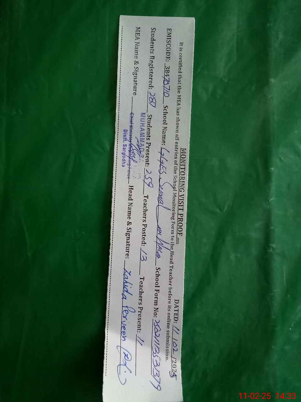 | Certified that this School was Inspected by the Undersigned MEA/DMO Today and the Information Stated Above is as Per Record. | |||||