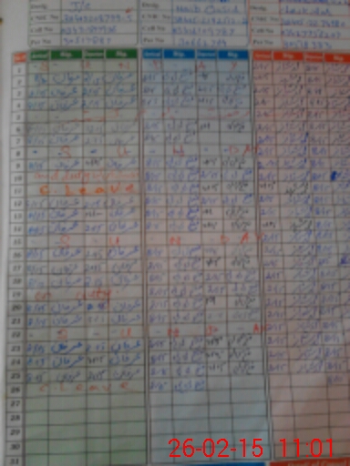 | CNIC | Full Name | Designation | R/C | Absence During Last Calender Month |