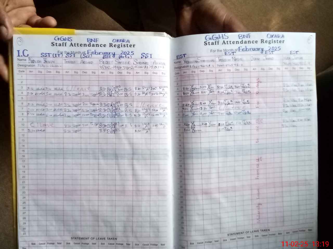 | CNIC | Full Name | Designation | R/C | Absence During Last Calender Month |