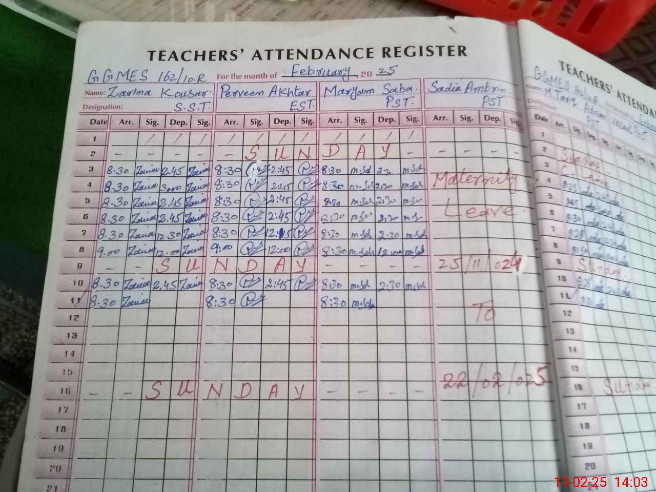 | Leave | Duty | Absent | Maternity | Medical | Ex- Pak |