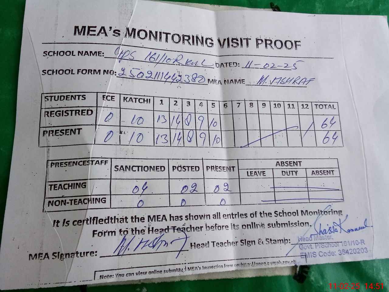 | EMIS Code: 36420203 | Name of School: GPS 161/10-R, KHANEWAL | |||