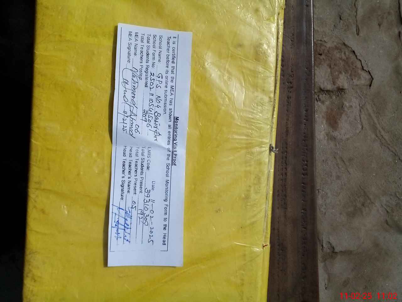| Attendance Register | Head Teacher | MEA with School | Visit Proof |