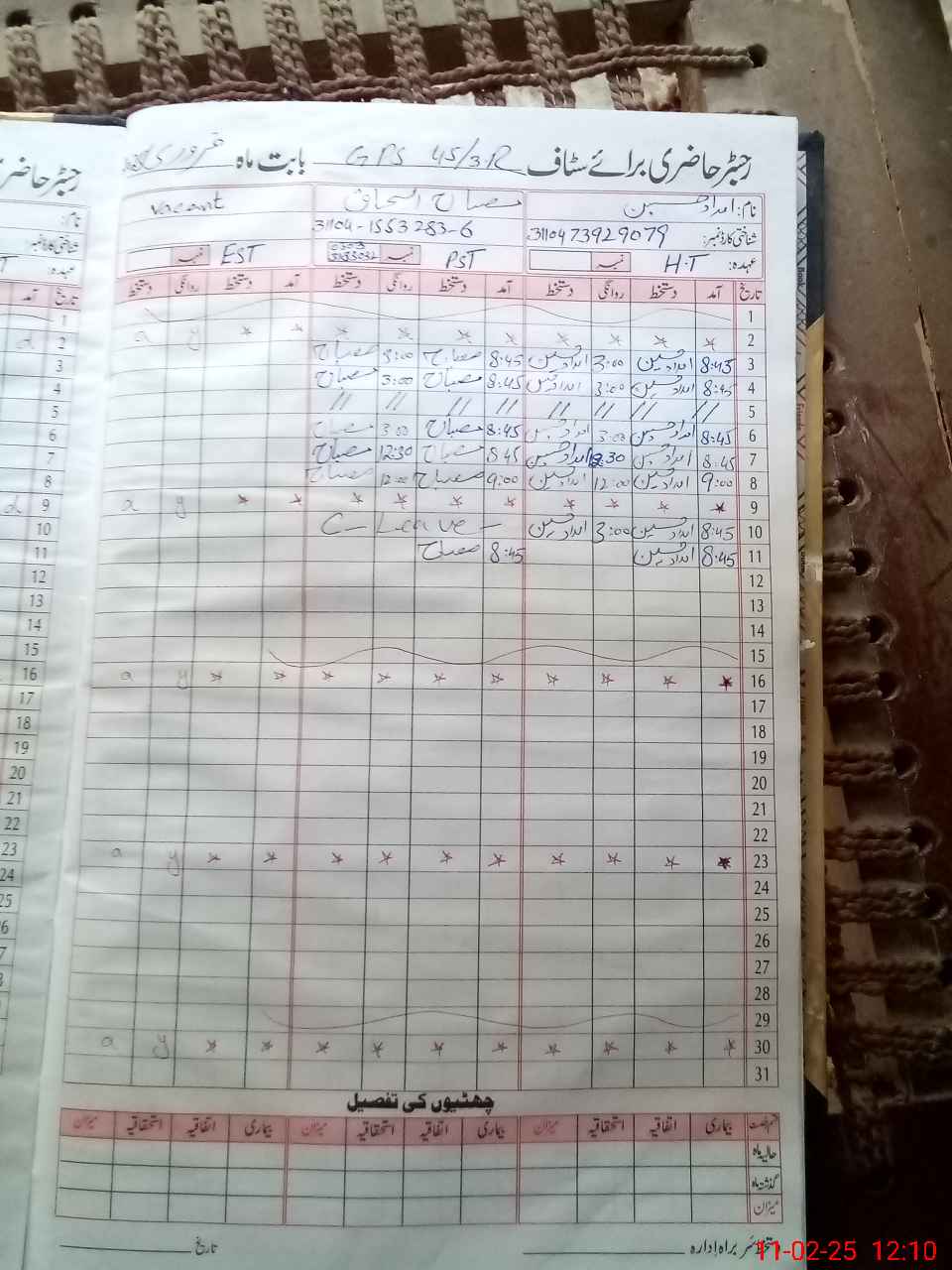 | Name: Im**** Hu**** Designation: (School Headmaster's/Headmistress's) PST Phone/Cell Number: 03**** |