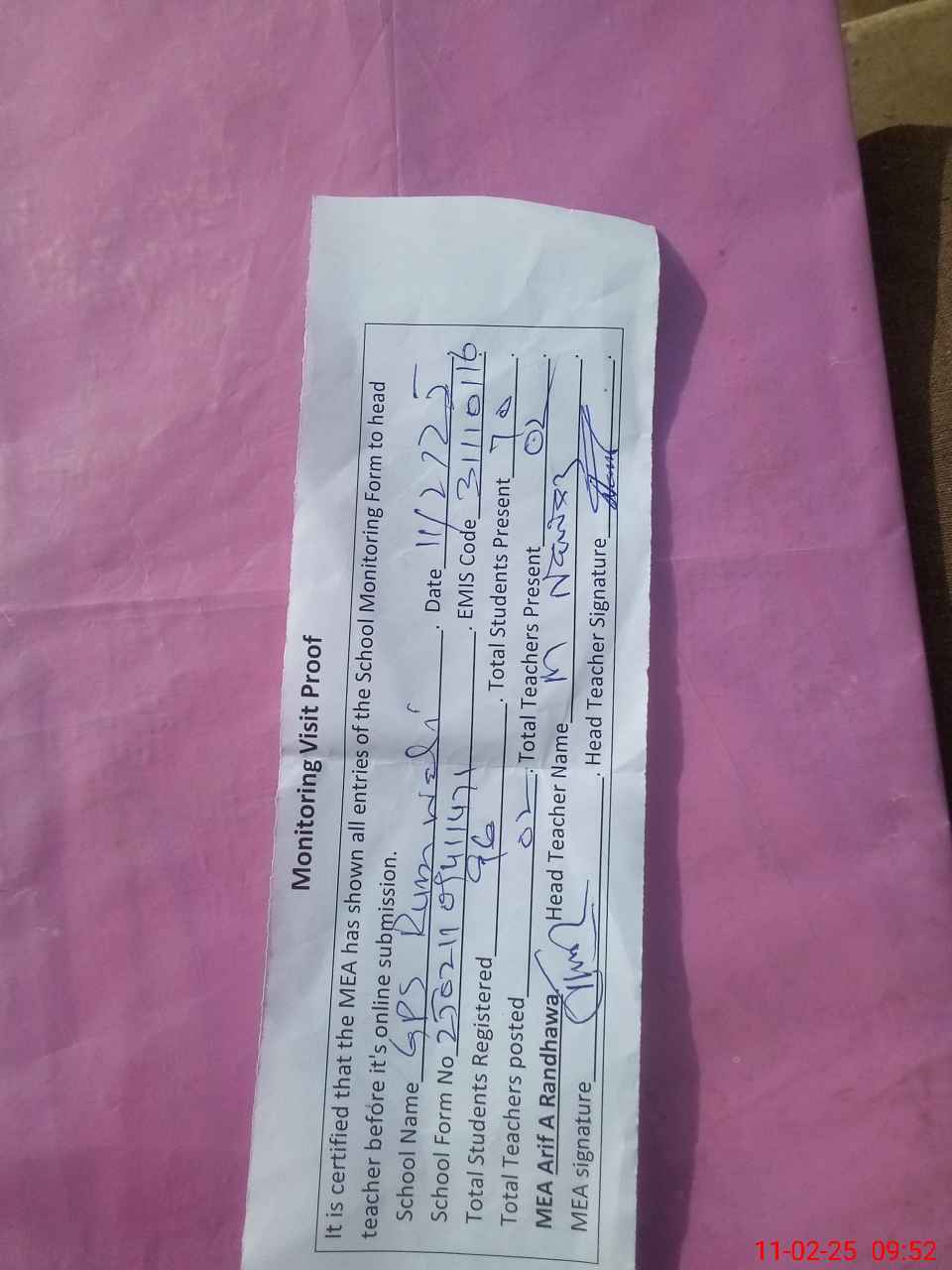 | EMIS Code: 31110116 | Name of School: GPS RAUM WALI | |||