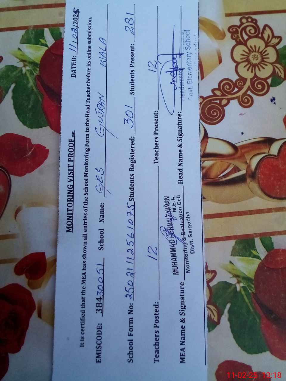 | EMIS Code: 38430051 | Name of School: GES GUJRAN WALA | |||