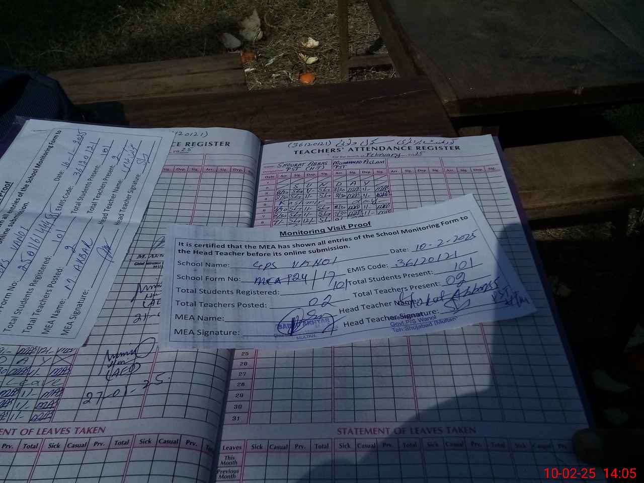 | Attendance Register | Head Teacher | MEA with School | Visit Proof |
