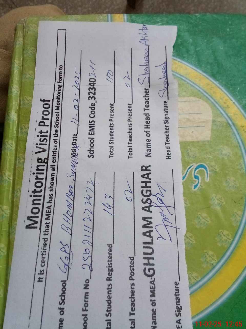 | EMIS Code: 32340211 | Name of School: GGPS BHAMBOO SANDILLA | |||