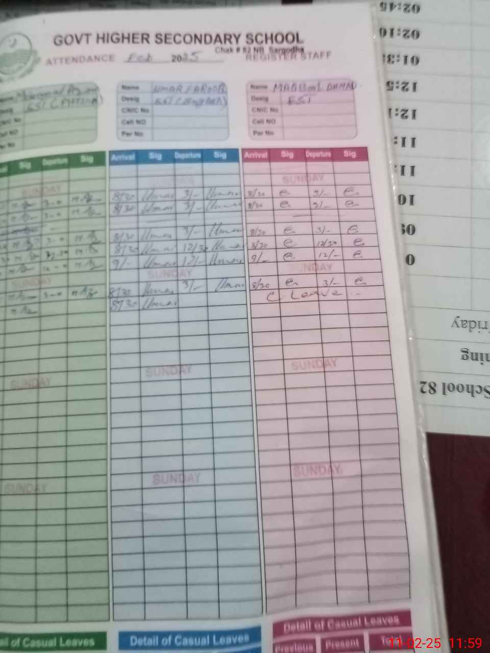 | CNIC | Full Name | Designation | R/C | Absence During Last Calender Month |