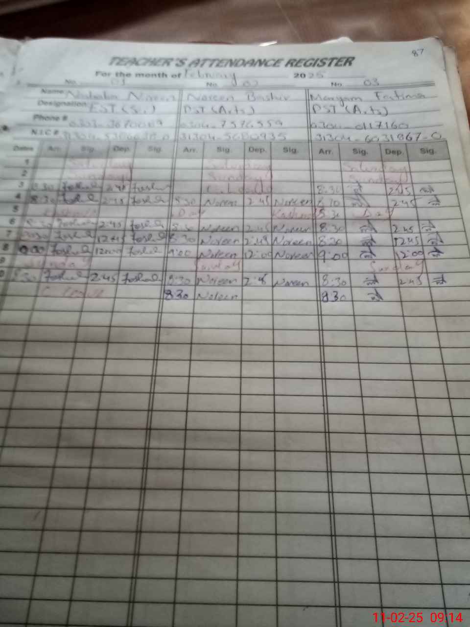 | Name: No**** No**** Designation: (School Headmaster's/Headmistress's) EST Phone/Cell Number: 03**** |
