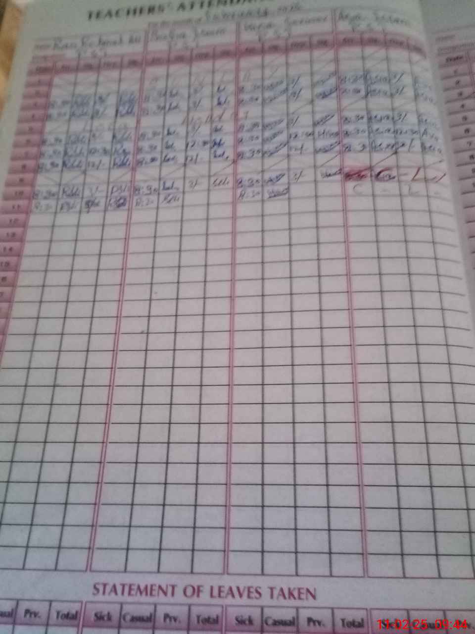 | Leave | Duty | Absent | Maternity | Medical | Ex- Pak |
