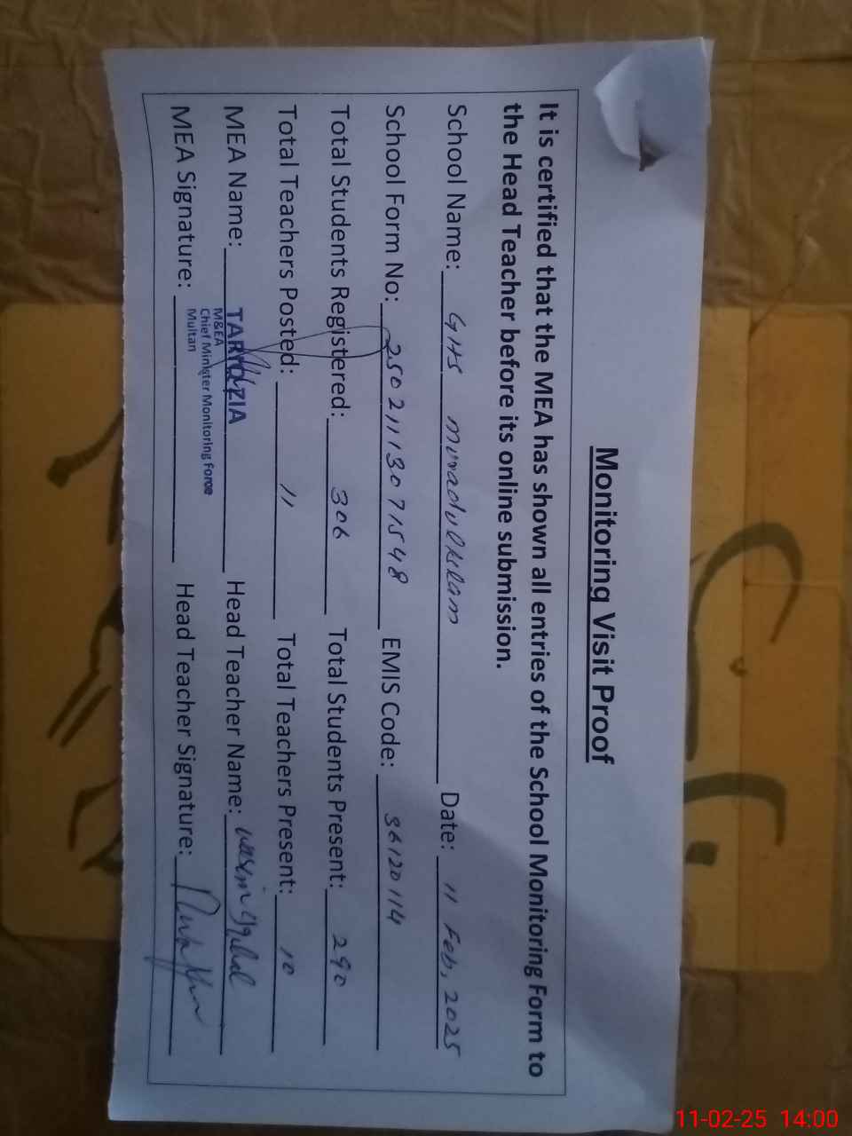 | EMIS Code: 36120114 | Name of School: GHS MURAD-UL-ISLAM SHUJABAD | |||