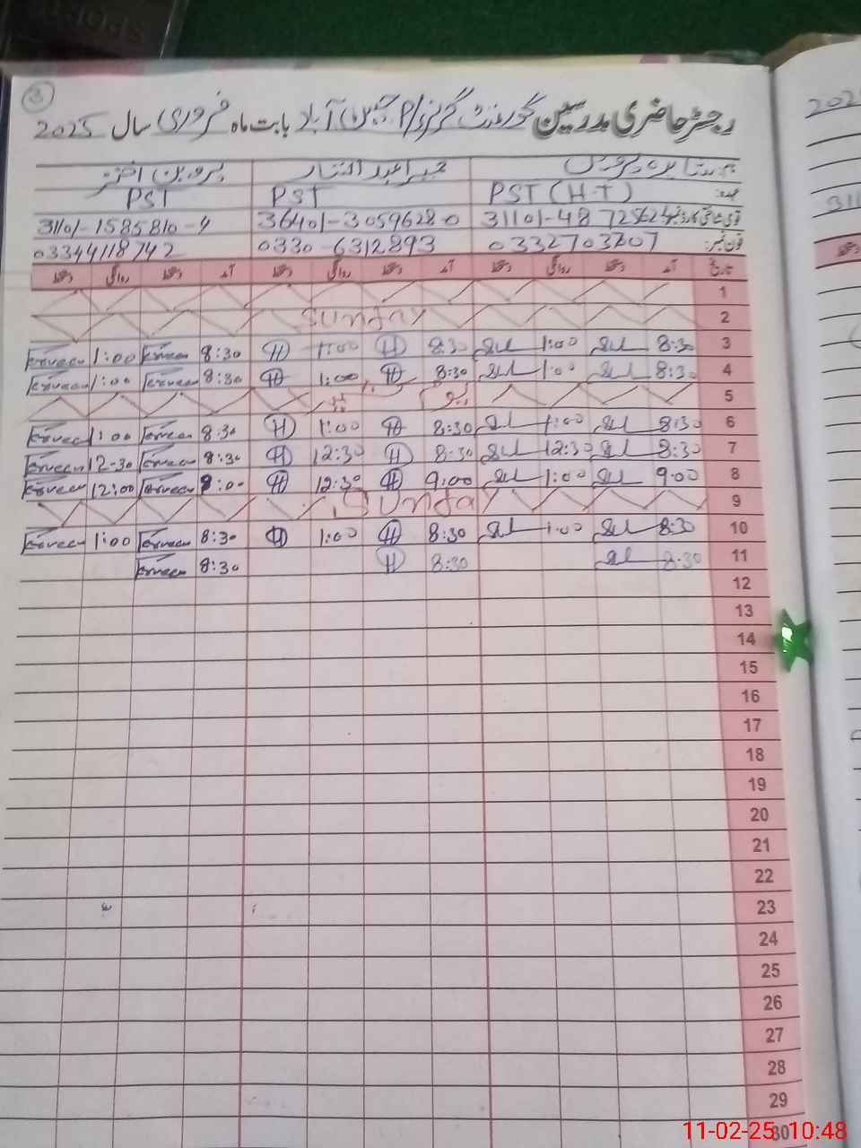 | Name: Sh**** Pa**** Designation: (School Headmaster's/Headmistress's) PST Phone/Cell Number: 03**** |