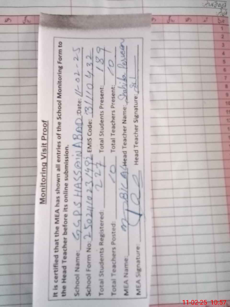 | EMIS Code: 31110432 | Name of School: GGPS HUSSAIN ABAD | |||