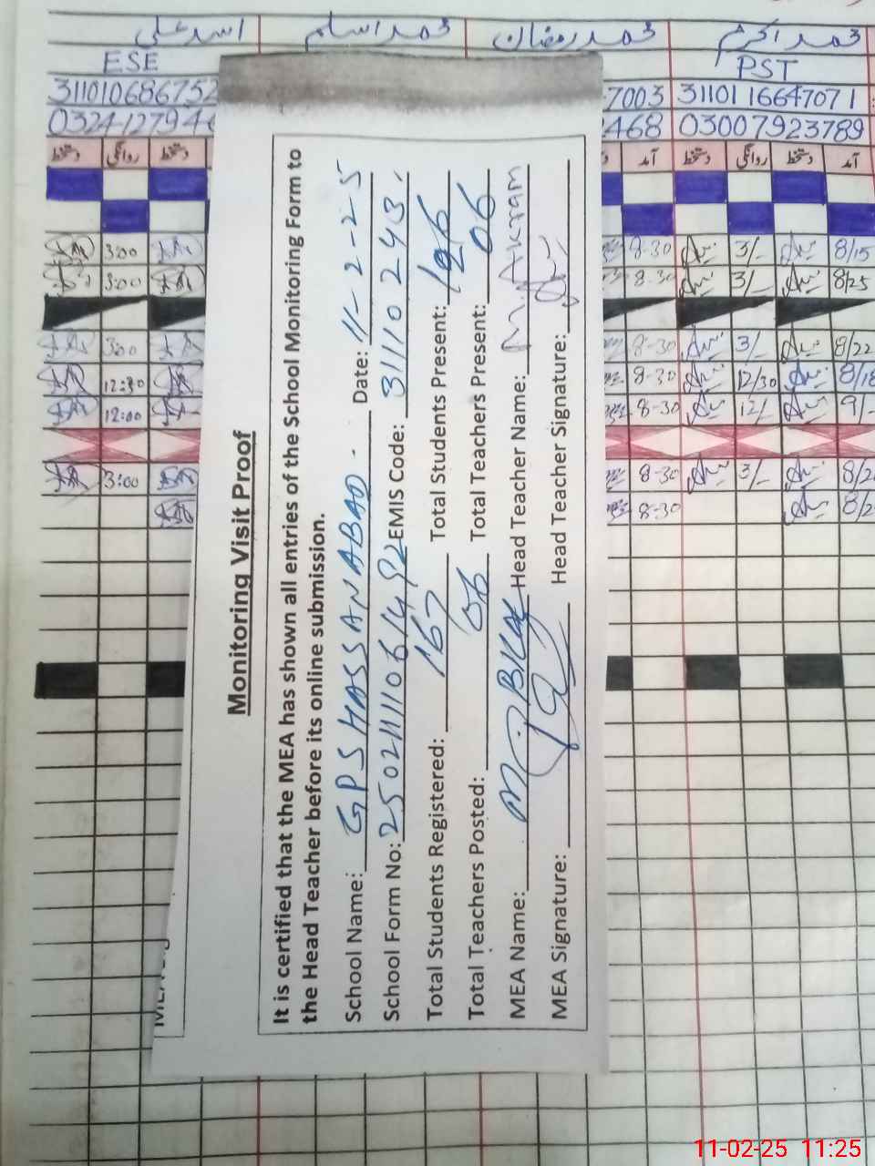 | EMIS Code: 31110243 | Name of School: GPS HASAN ABAD | |||