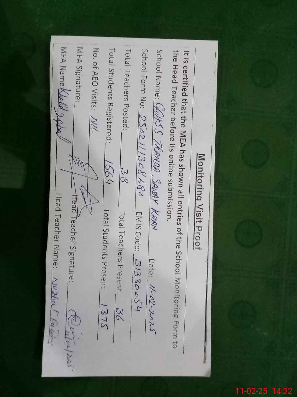 | EMIS Code: 31330054 | Name of School: GGHSS TRANDA SAWAY KHAN | |||