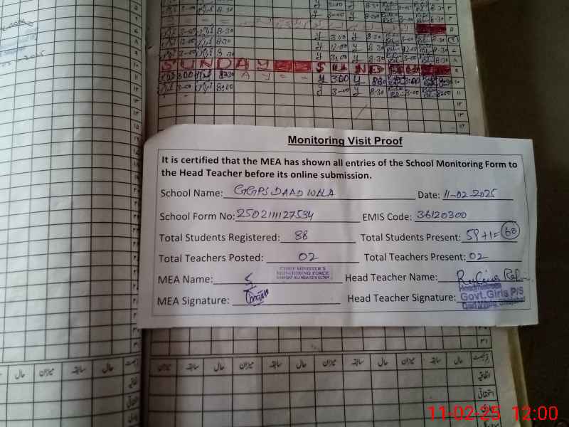 | EMIS Code: 36120300 | Name of School: GGPS DAD WALA SHUJABAD DISTT. MULTAN | |||