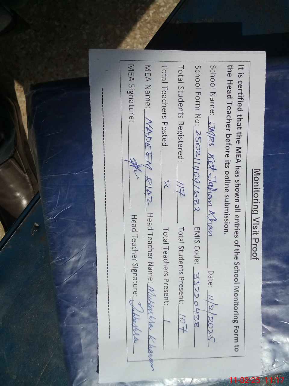 | EMIS Code: 35220438 | Name of School: GMPS KOT JAHAN KHAN | |||