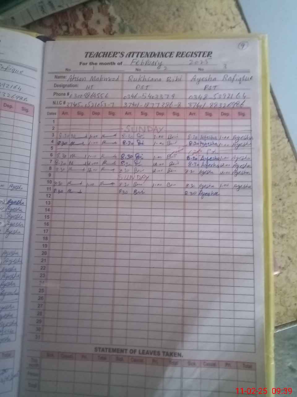 | Name: AH**** ME**** Designation: (School Headmaster's/Headmistress's) PTC/JV Phone/Cell Number: 03**** |