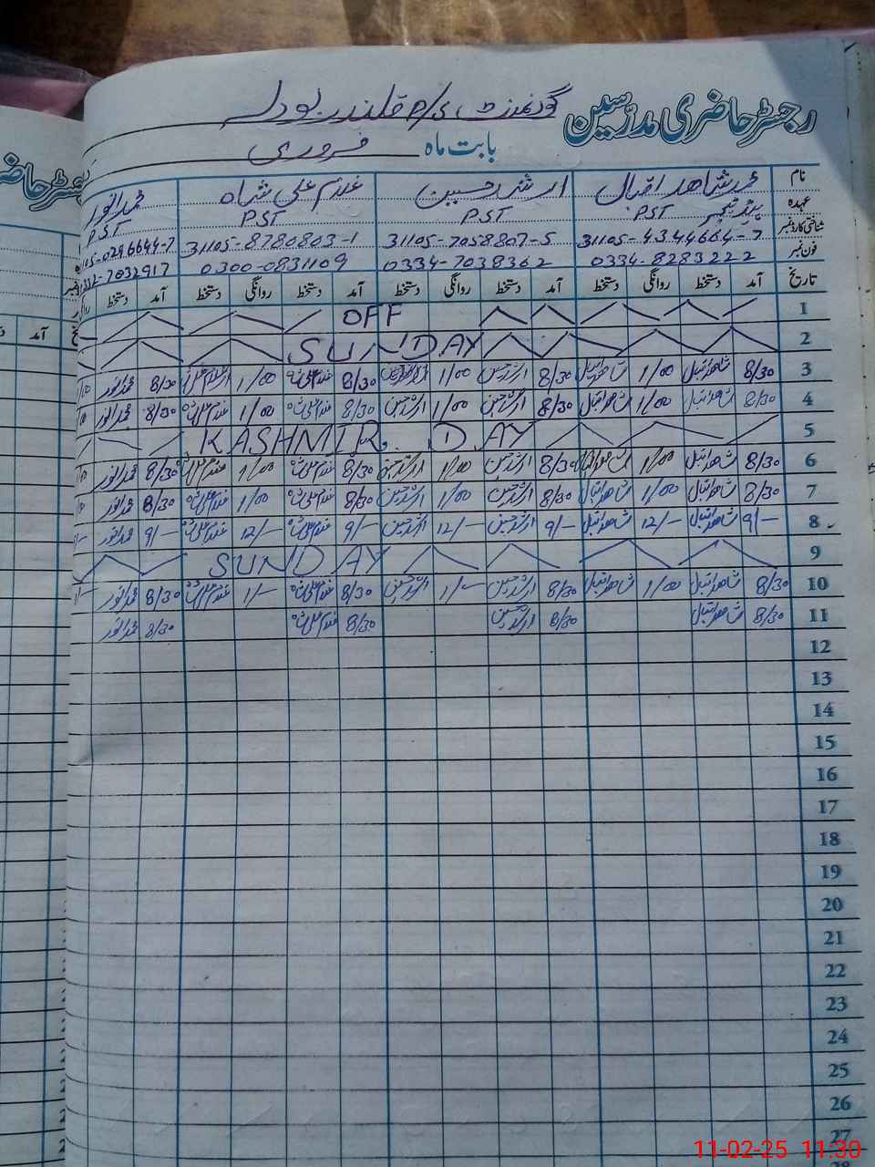 | Name: MU**** Sh**** Iq**** Designation: (School Headmaster's/Headmistress's) PST Phone/Cell Number: 03**** |