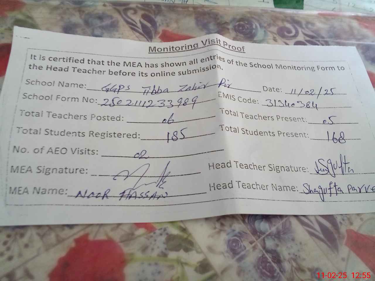 | EMIS Code: 31340384 | Name of School: GGPS TIBBA ZAHIR PEER | |||