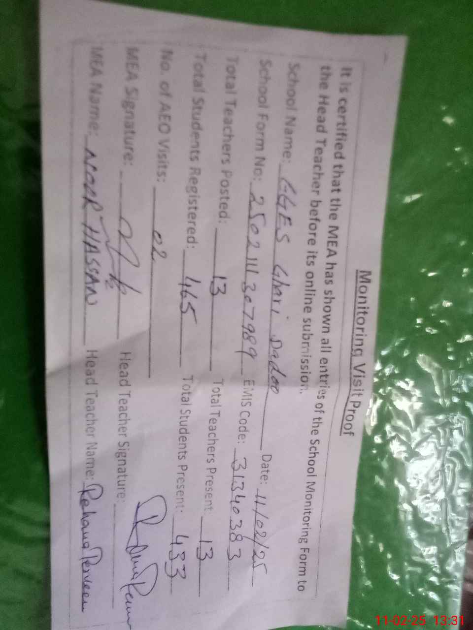 | EMIS Code: 31340383 | Name of School: GGES GHARI DADO | |||