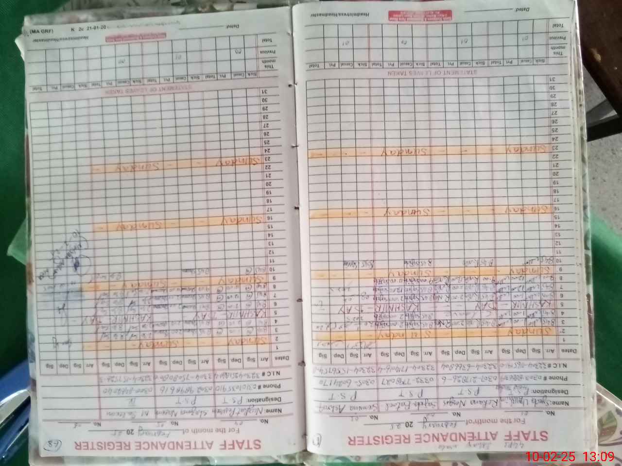| CNIC | Full Name | Designation | R/C | Absence During Last Calender Month |