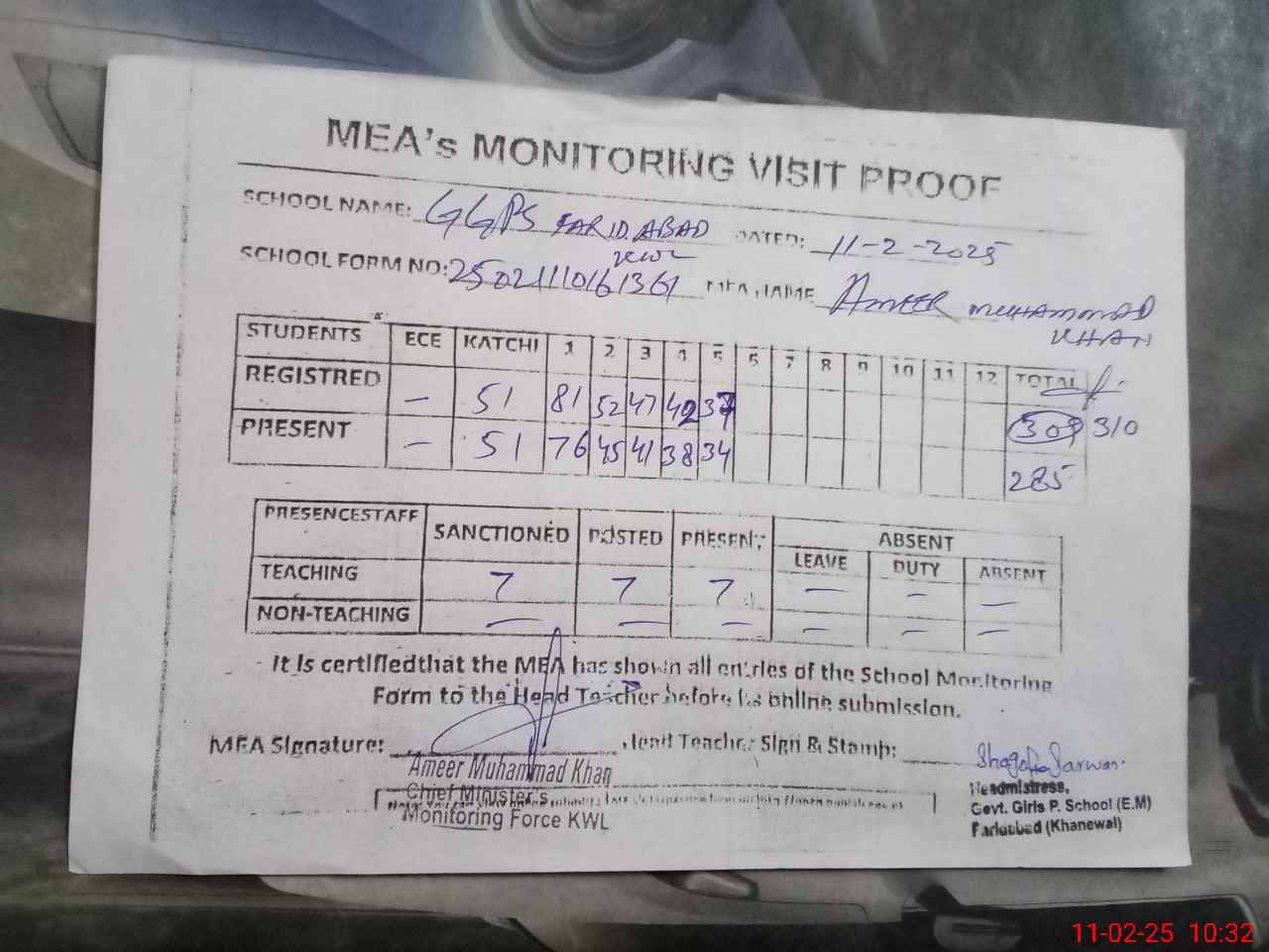 | EMIS Code: 36420354 | Name of School: GGPS FARID ABAD, KHANEWAL | |||