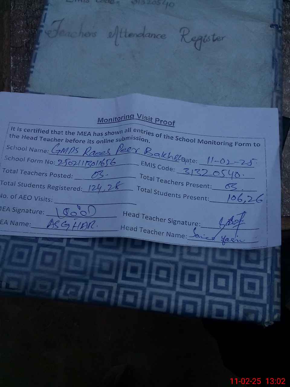 | EMIS Code: 31320540 | Name of School: GMPS RAIS PEER BUX | |||