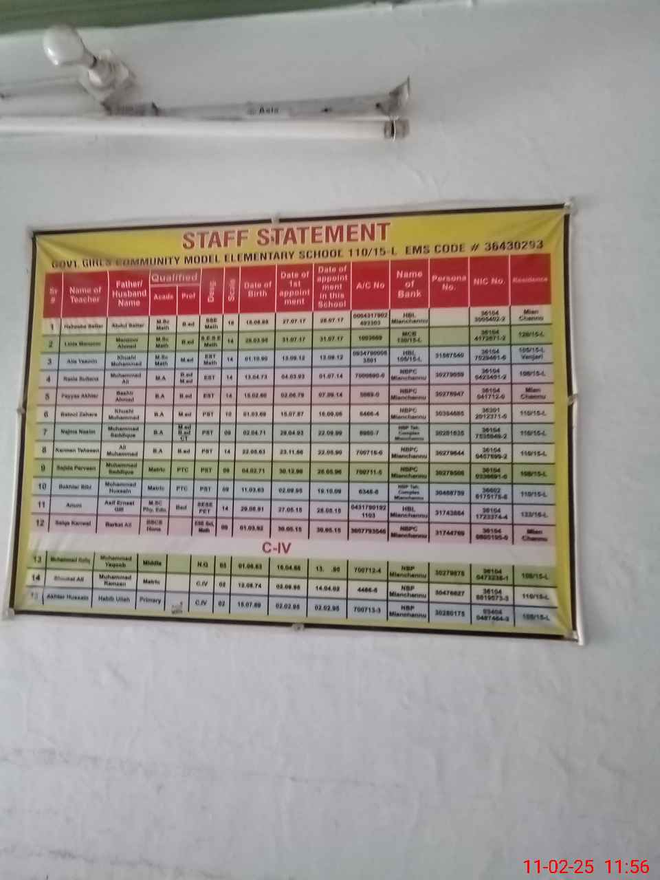 | EMIS Code: 36430293 | Name of School: GGCMES 110/15-L MIAN CHANNU | |||