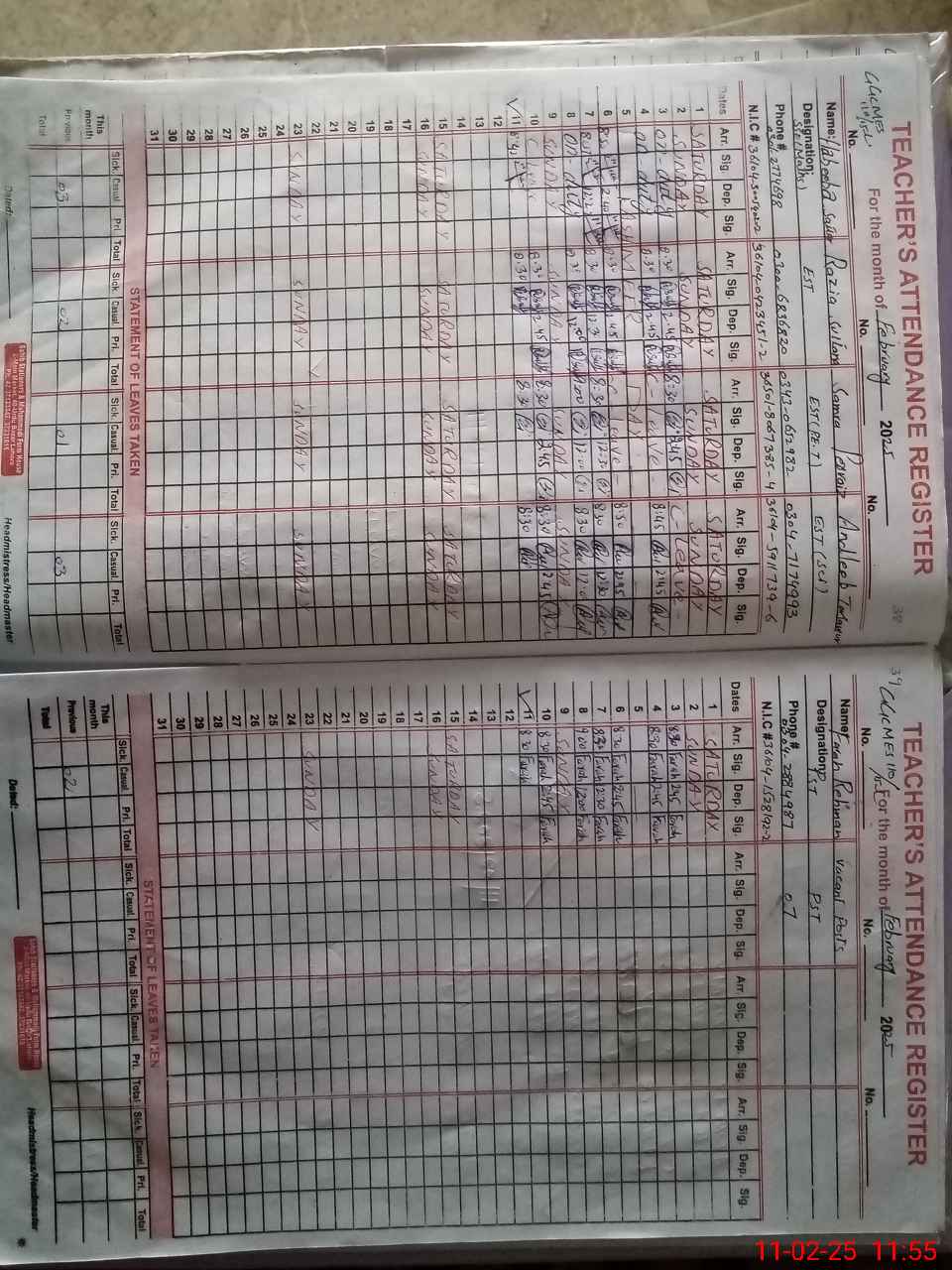 | CNIC | Full Name | Designation | R/C | Absence During Last Calender Month |