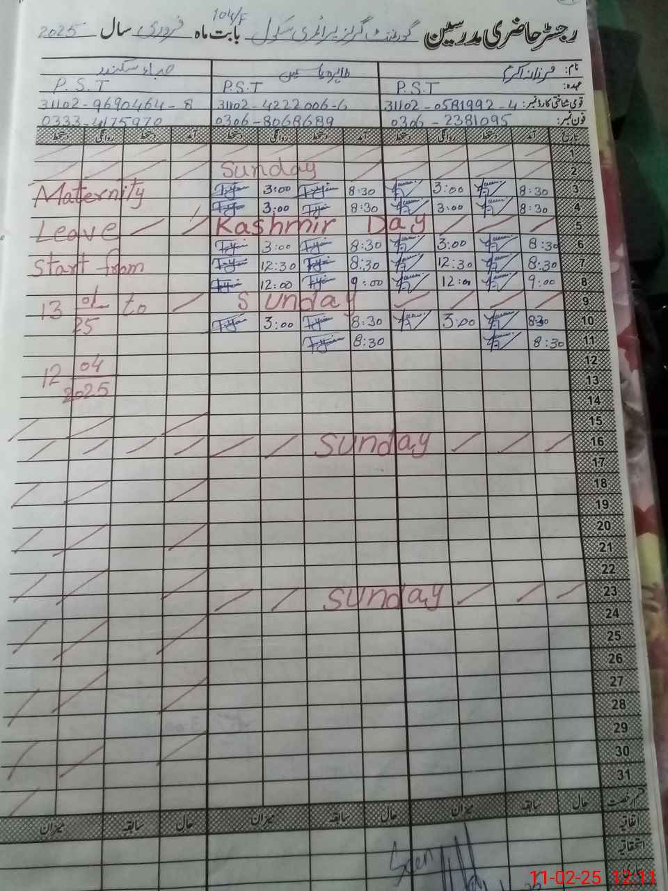 | 31**** | Sa**** Si**** | PST | Regular | 19 | 0 | 0 | 19 | 0 | 0 | 0 | 0 | 0 | Maternity |