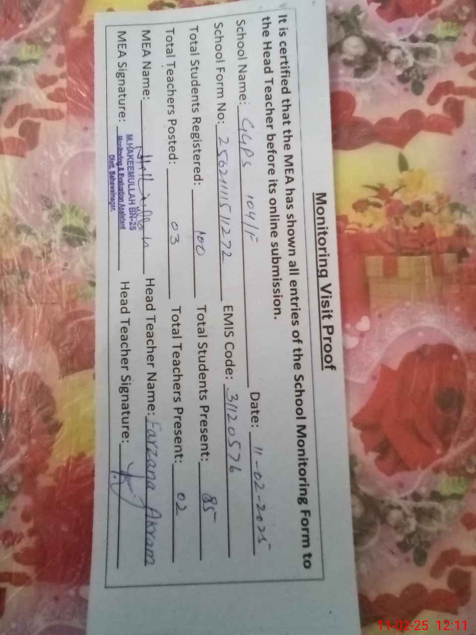| EMIS Code: 31120576 | Name of School: GGPS CHAK NO. 104/F | |||
