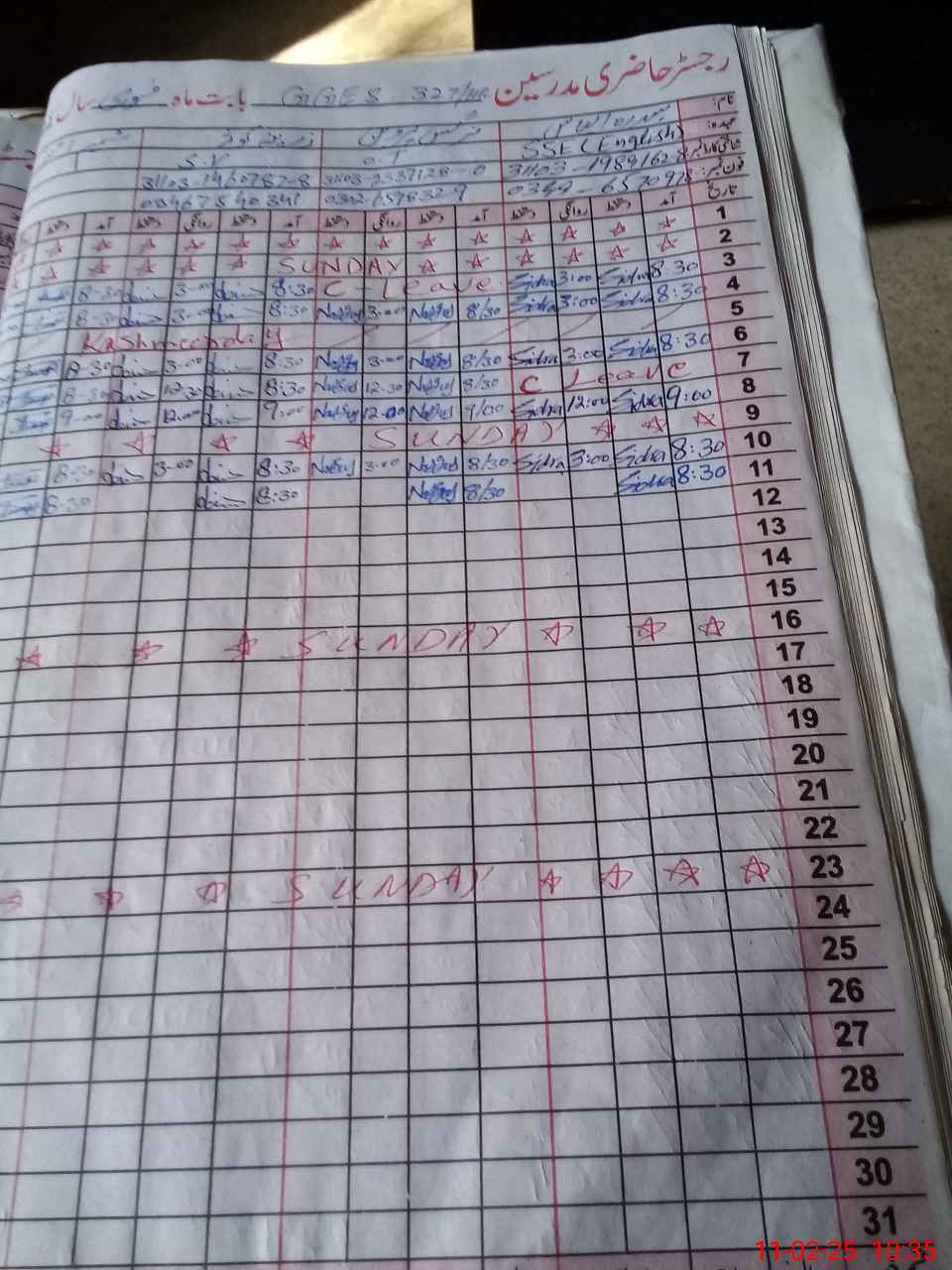 | Name: SI**** IL**** Designation: (School Headmaster's/Headmistress's) SSE ENGLISH Phone/Cell Number: 03**** |