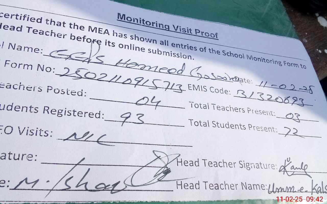 | EMIS Code: 31320693 | Name of School: GGPS HAMEED KHASOORA | |||