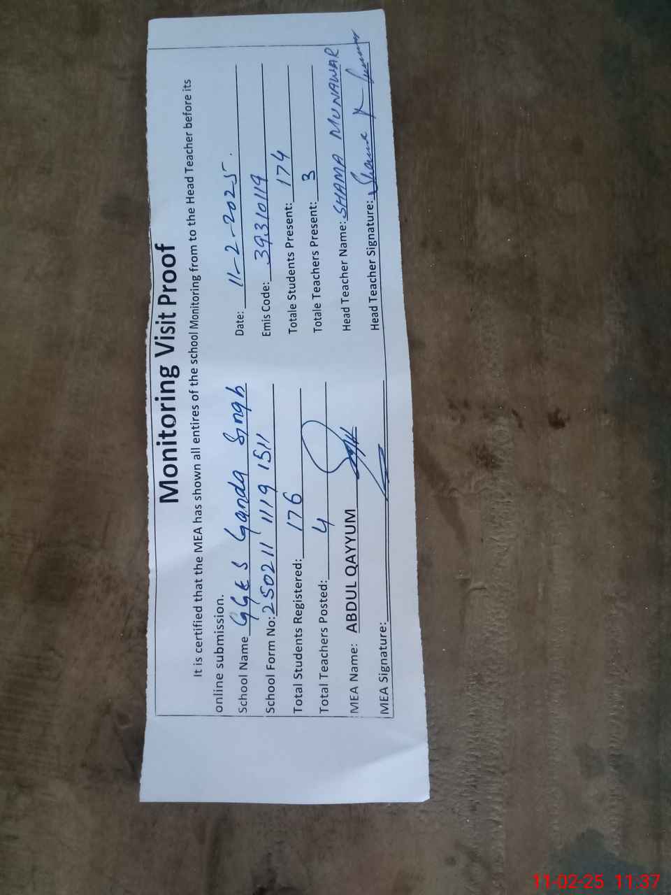| EMIS Code: 39310119 | Name of School: GGES CHAK GANDA SINGH | |||