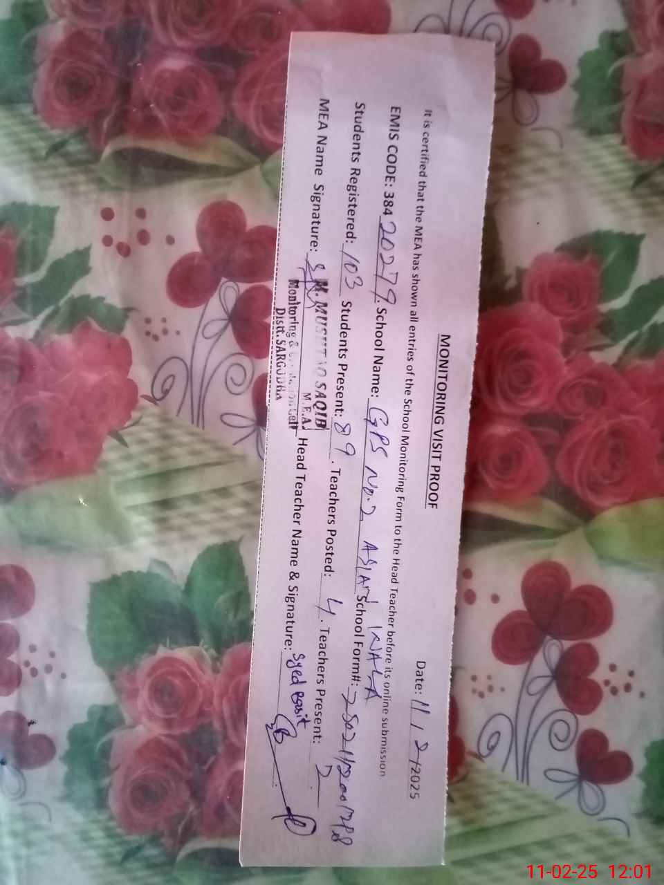 | EMIS Code: 38420279 | Name of School: GPS NO.2 ASIAN WALA | |||
