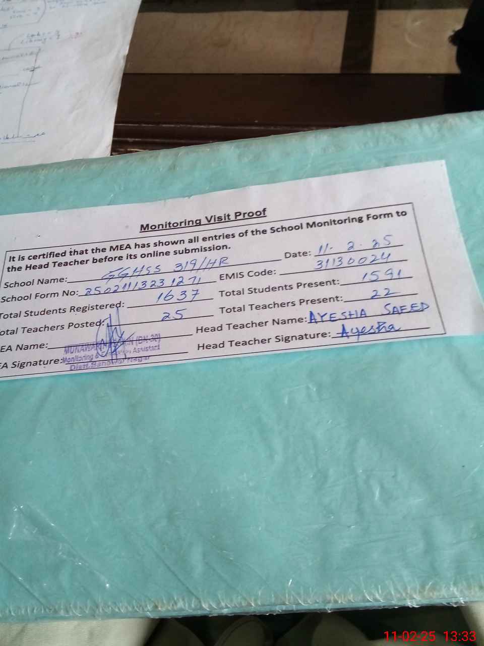 | EMIS Code: 31130024 | Name of School: GGHSS CHAK NO 319 HR | |||