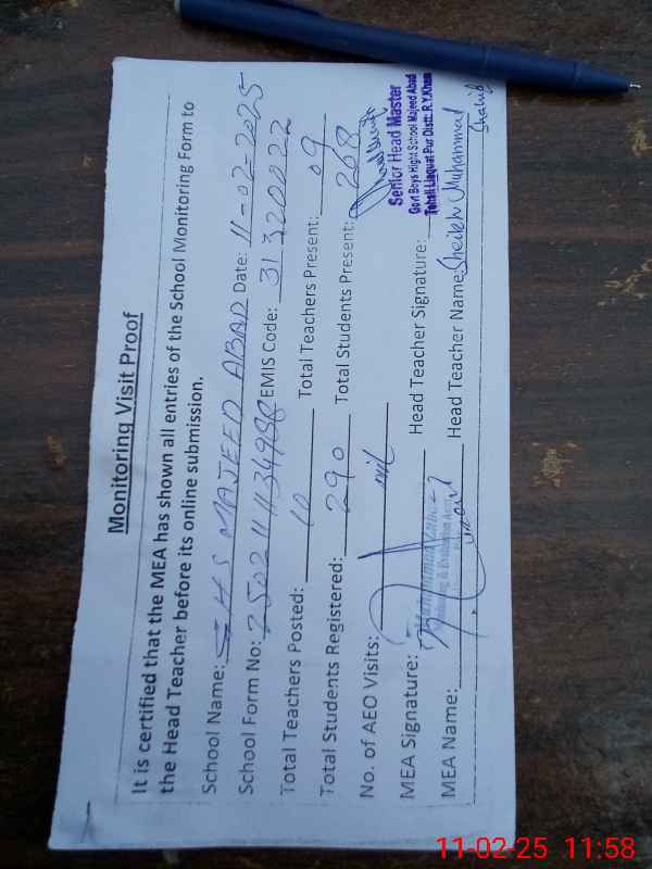 | EMIS Code: 31320022 | Name of School: GHS MAJEED ABAD | |||