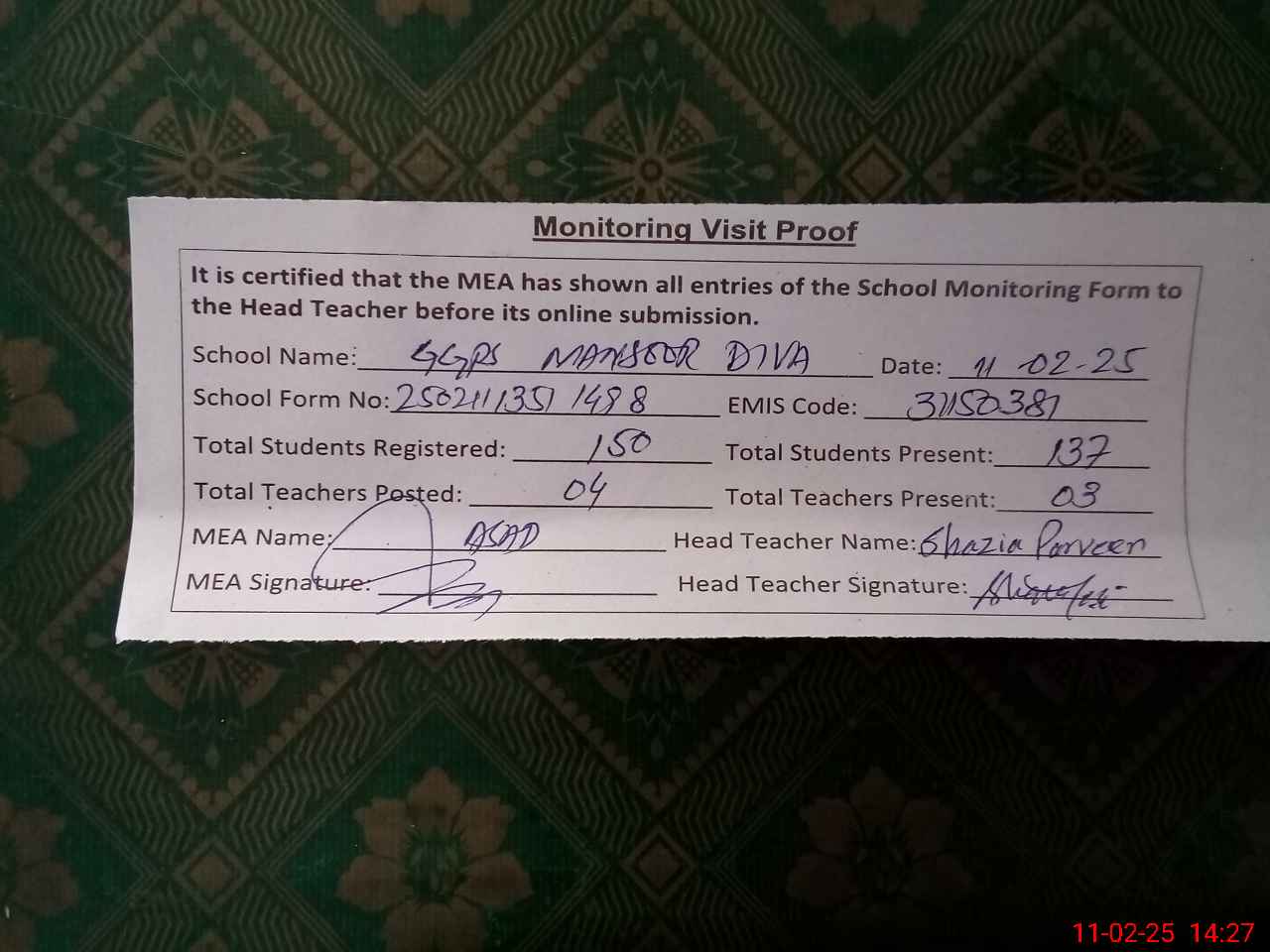 | EMIS Code: 31150381 | Name of School: GGPS MANSOOR DIVA | |||