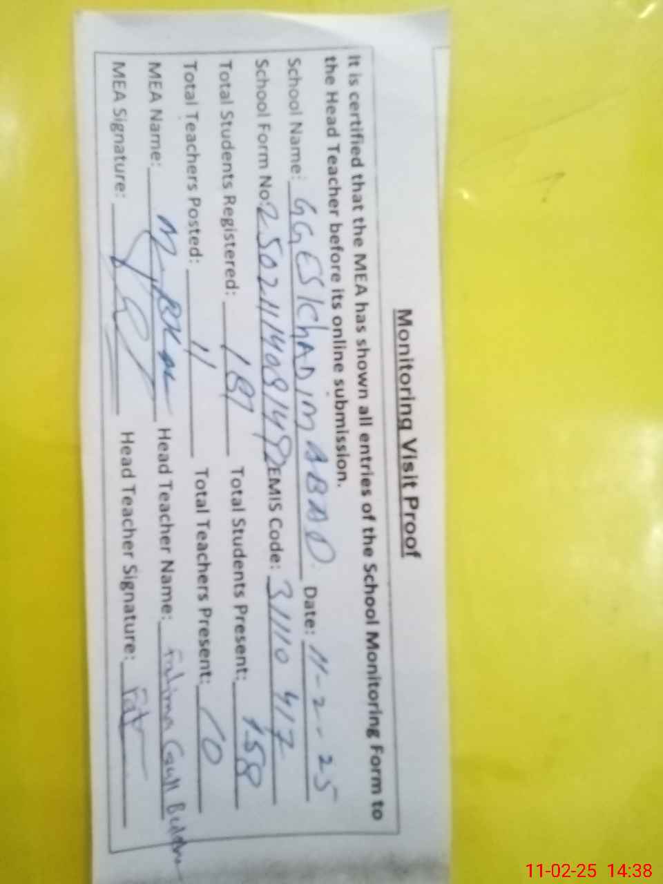 | EMIS Code: 31110417 | Name of School: GGES KHADIM ABAD | |||
