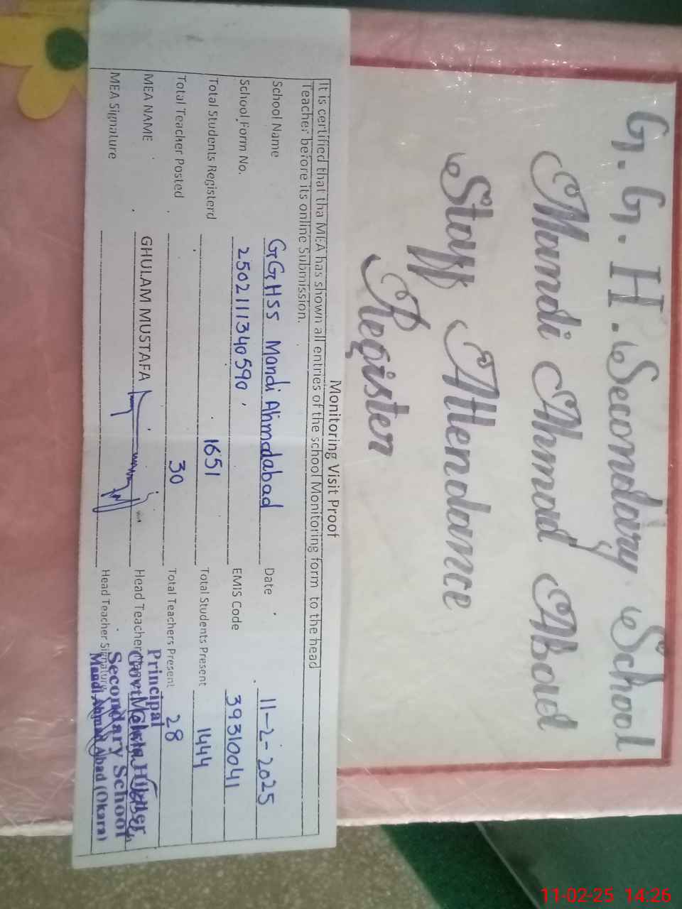 | EMIS Code: 39310041 | Name of School: GGHSS MANDI AHMED ABAD | |||