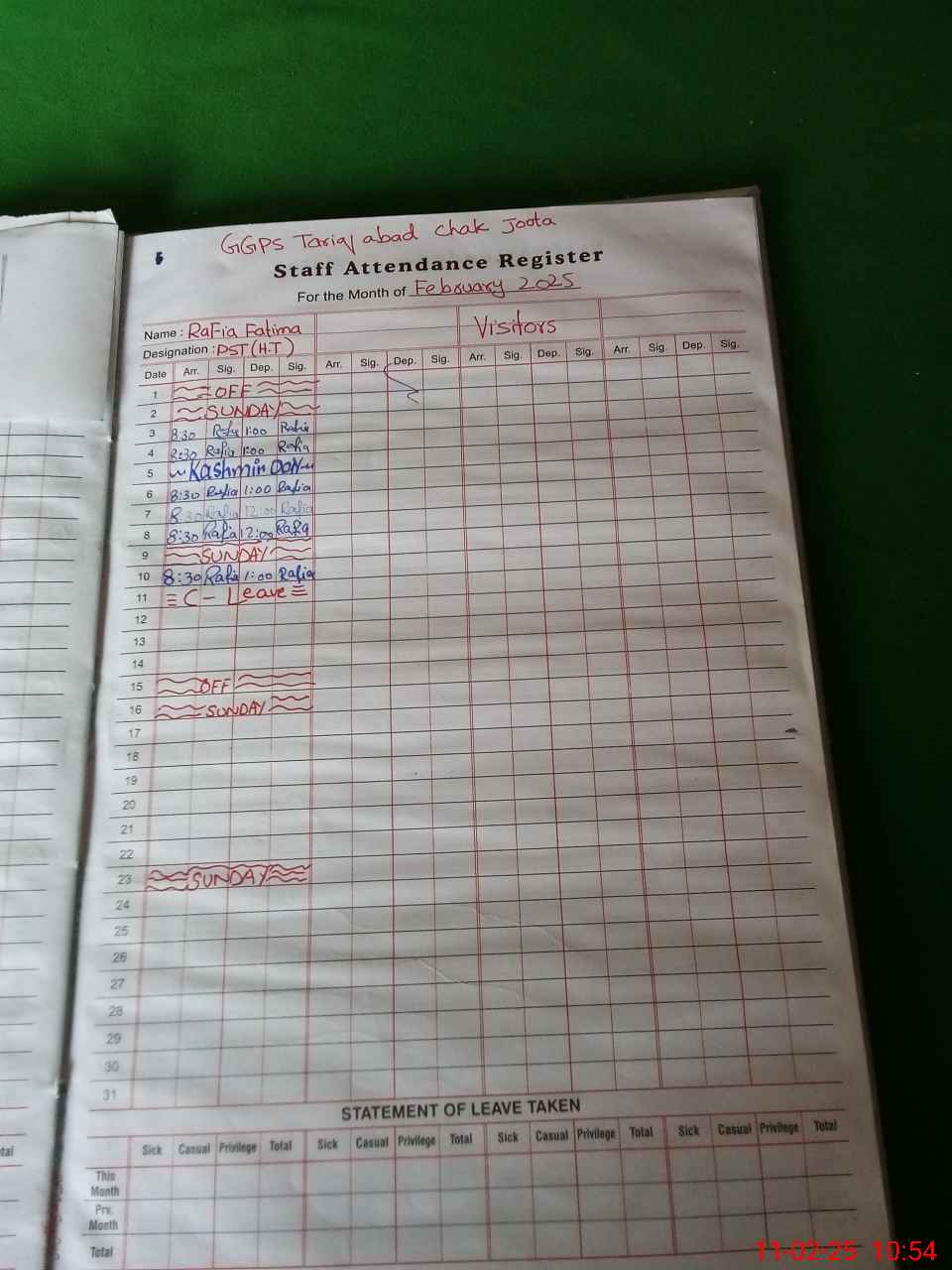 | Name: Ra**** Fa**** Designation: (School Headmaster's/Headmistress's) PST Phone/Cell Number: 03**** |