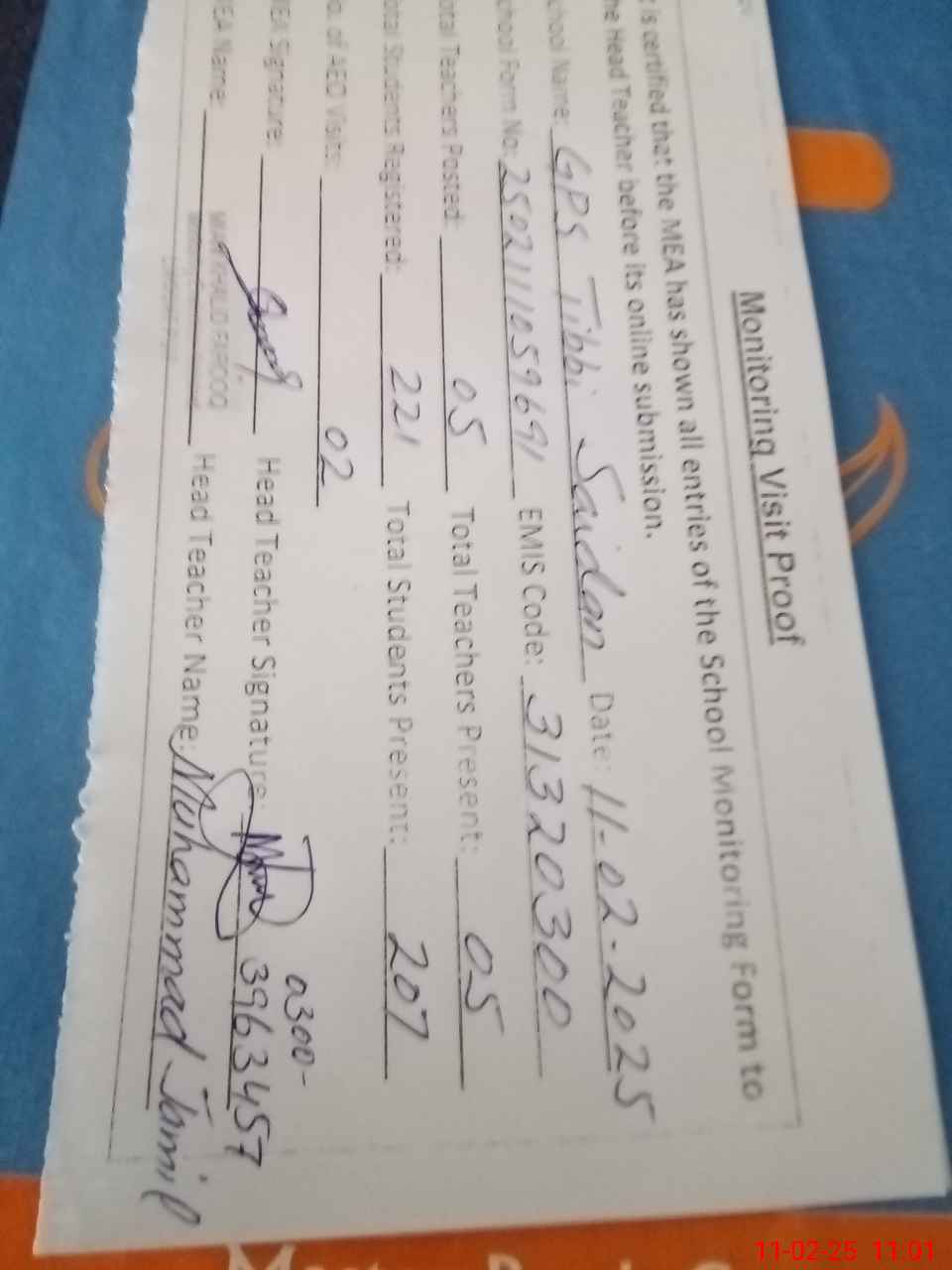 | Name: MU**** JA**** Designation: (School Headmaster's/Headmistress's) PST/PTC/JV Phone/Cell Number: 03**** |